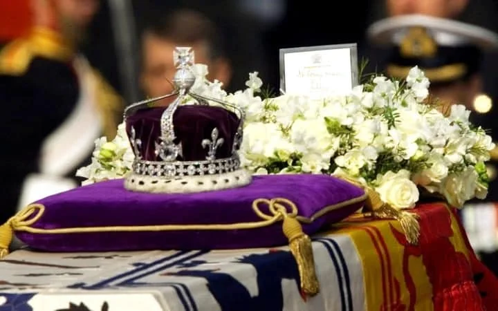 The Koh-i-noor in the Queen Mother’s Crown as the Queen Mother laid in state, April 2002.